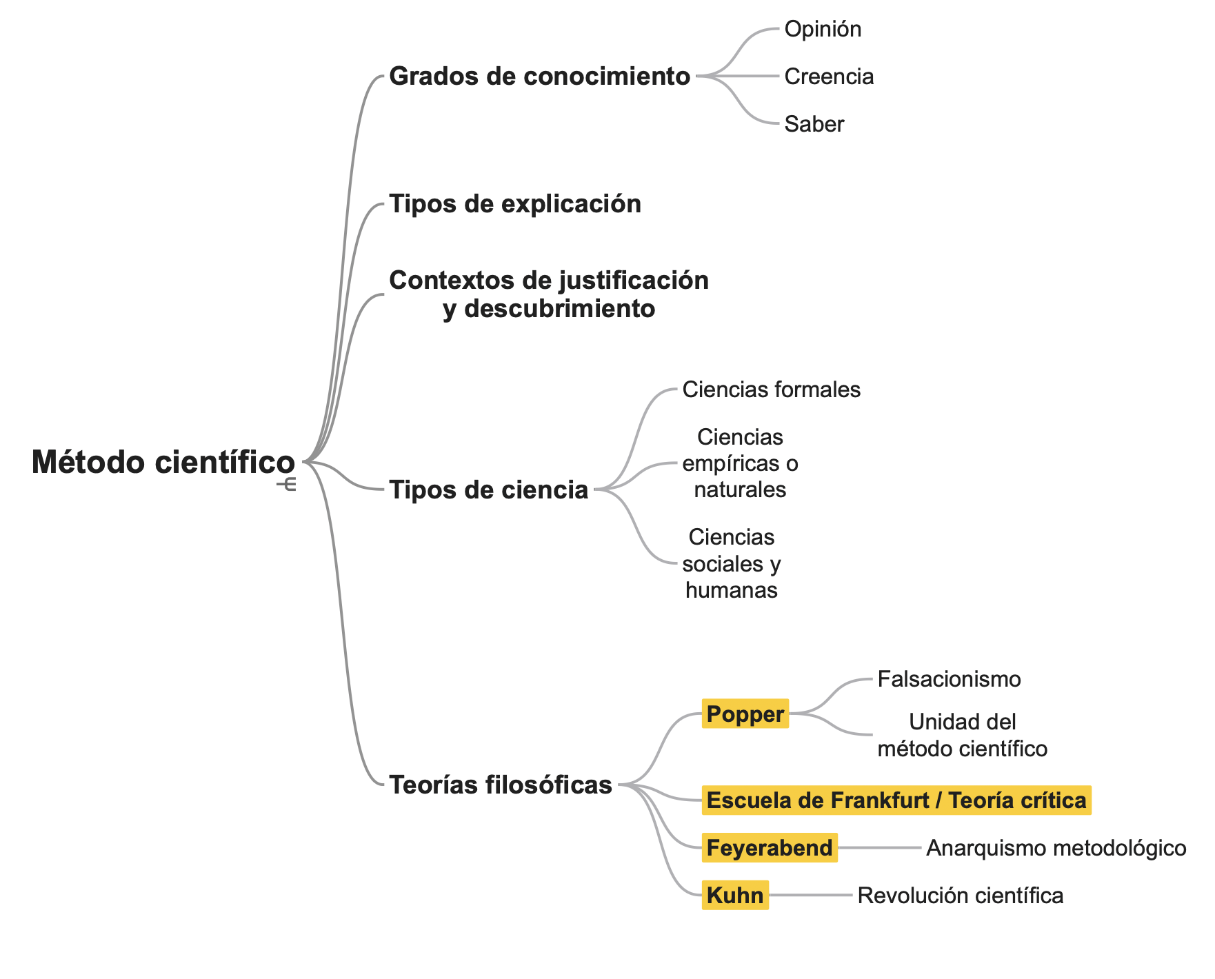 Conceptos. Epistemología. Empírico. Formal. Deducción. Inducción. Hipótesis. Verificación. Refutación o falsación. Causas (Aristóteles). Teleología. Mecanicismo. Matematización. Experimento. Positivismo. Paradigma. Ciencia normal. Revolución científica. Métodos inductivo y deductivo. Método hipotético-deductivo. Contexto de descubrimiento y de justificación. Los límites de la ciencia.